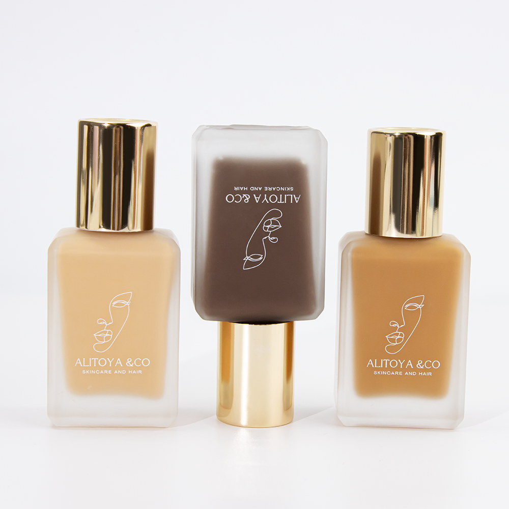 “A deep, luxurious foundation crafted to enhance melanin-rich skin with a satin matte finish. Light, breathable, yet full of power — designed for lasting elegance and radiant confidence. Because beauty doesn’t need to shout to be seen.”